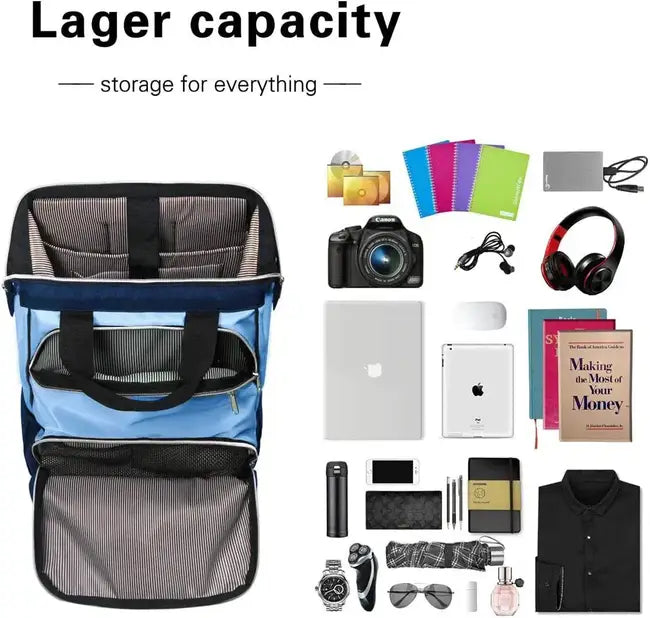 Perfect for daily work or air travel, Fits underneath an airplane seat nicely. Lots of pockets and compartments with easy access to each, Very roomy in the bag.