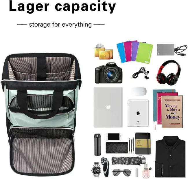 This backpack laptop bag has durable water resistant exterior, its largest compartment features a well-padded all around sleeve that can hold different size laptops up to 15.6 inches.