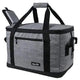 The cooler bag features a velcro flap on top for quick access without unzipping the whole top, a front zippered pocket for valuables, a built-in bottle opener on the side, and comfortable side grip and top handles that make heavy lifting a breeze.