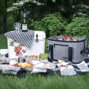 2. Your decision should align with how you intend to use the picnic basket. If you're planning beach outings or outdoor escapades in terrain consider opting for waterproof materials that are easy to maintain. Our modern picnic backpack could be an ideal choice.