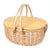 The elegant wicker basket with a wooden lid doubles as a serving or cutting board, making it perfect for outdoor meals, camping trips, or beach outings.